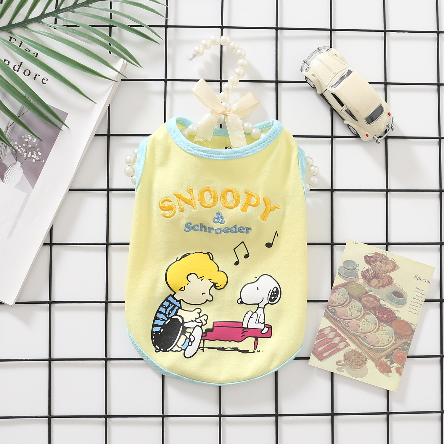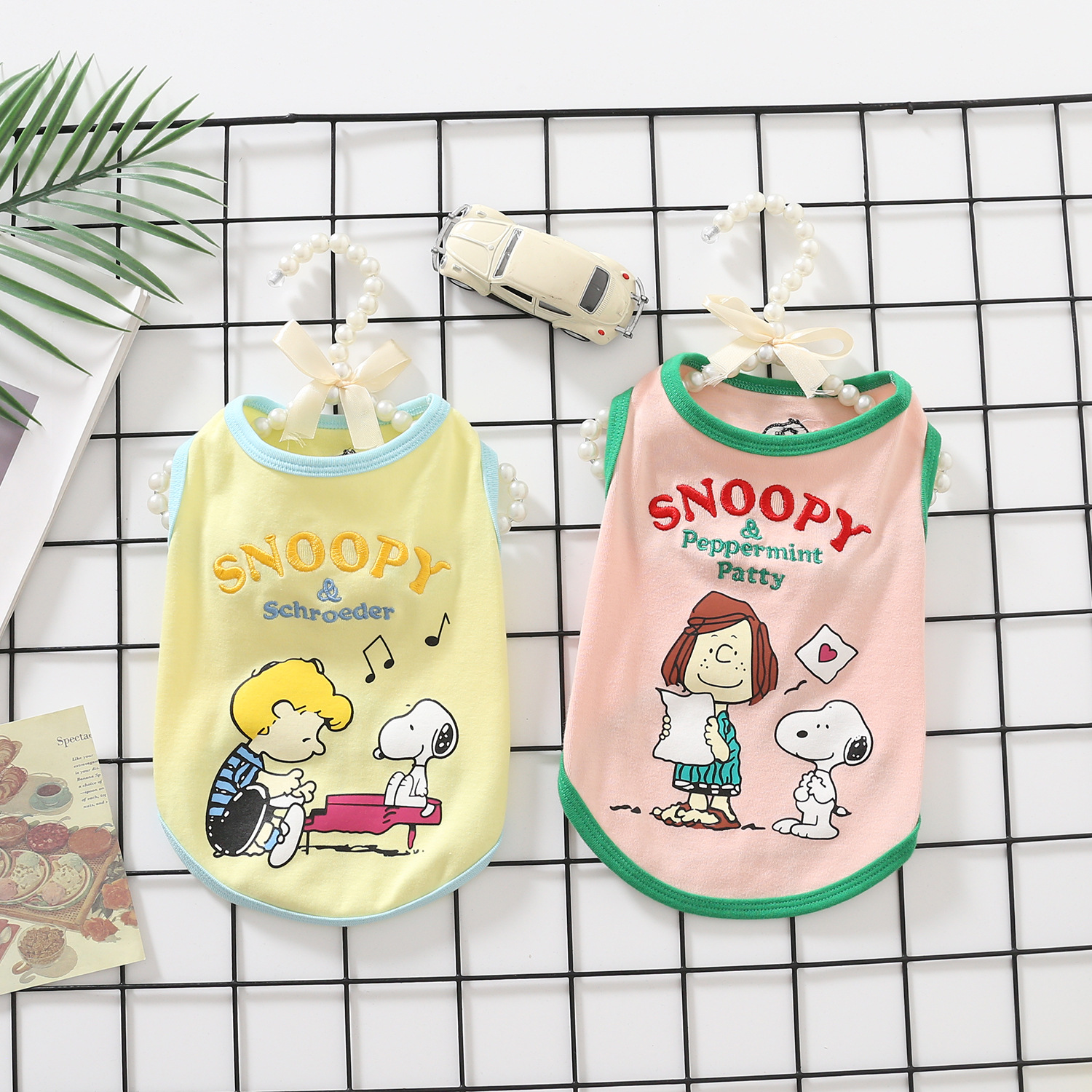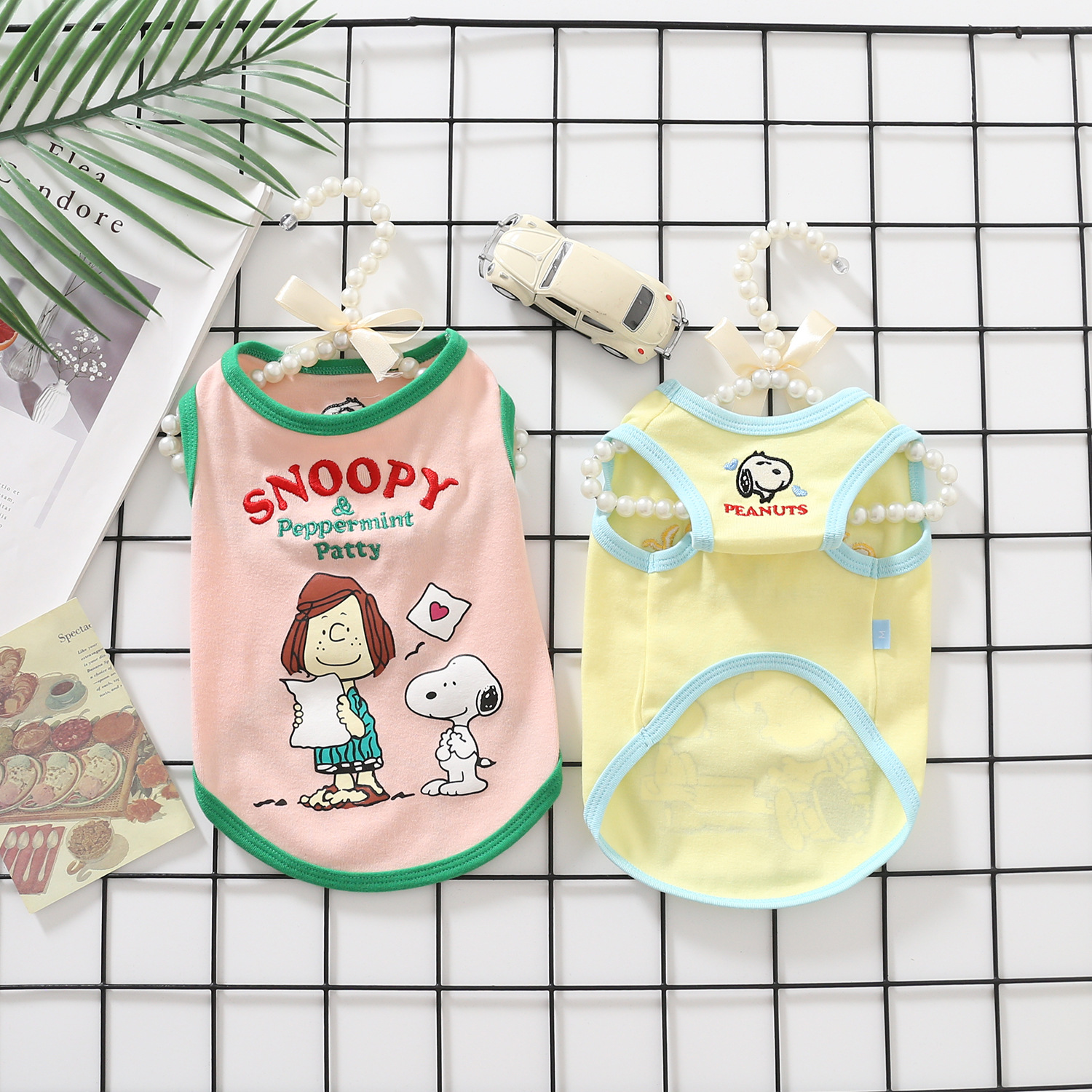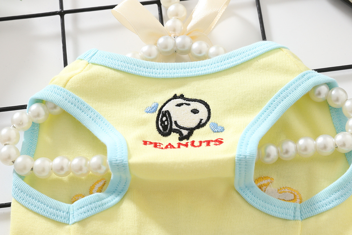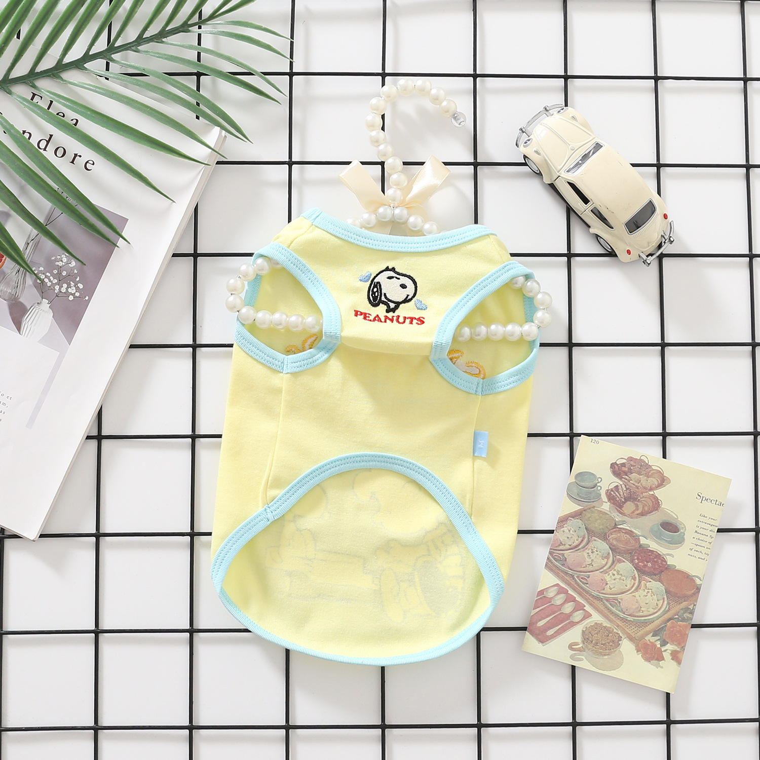 Dress your pet in a cute and comfortable everyday vest. This lightweight cotton dog top features an all-over cartoon puppy print with contrast red trim, making it perfect for daily wear, indoor lounging, and fun outings.