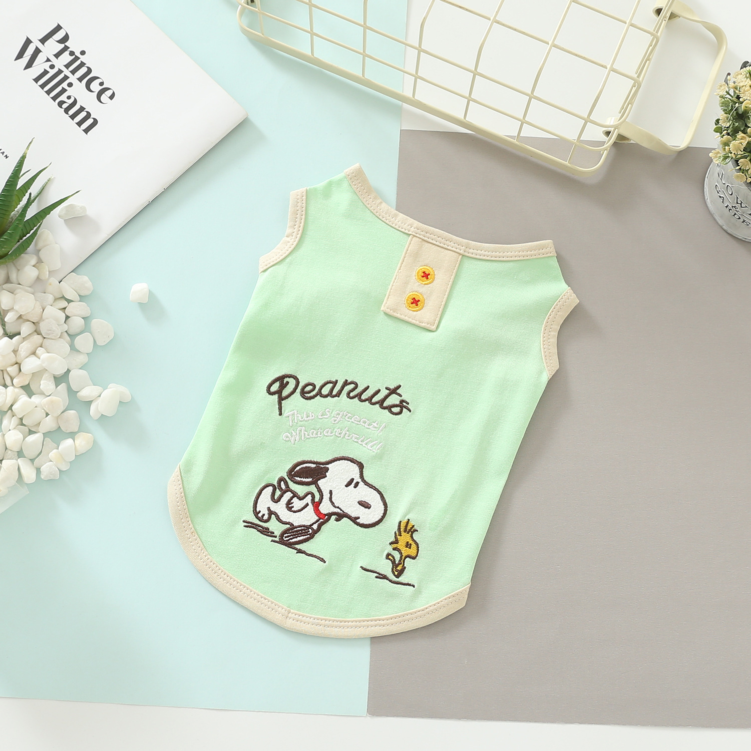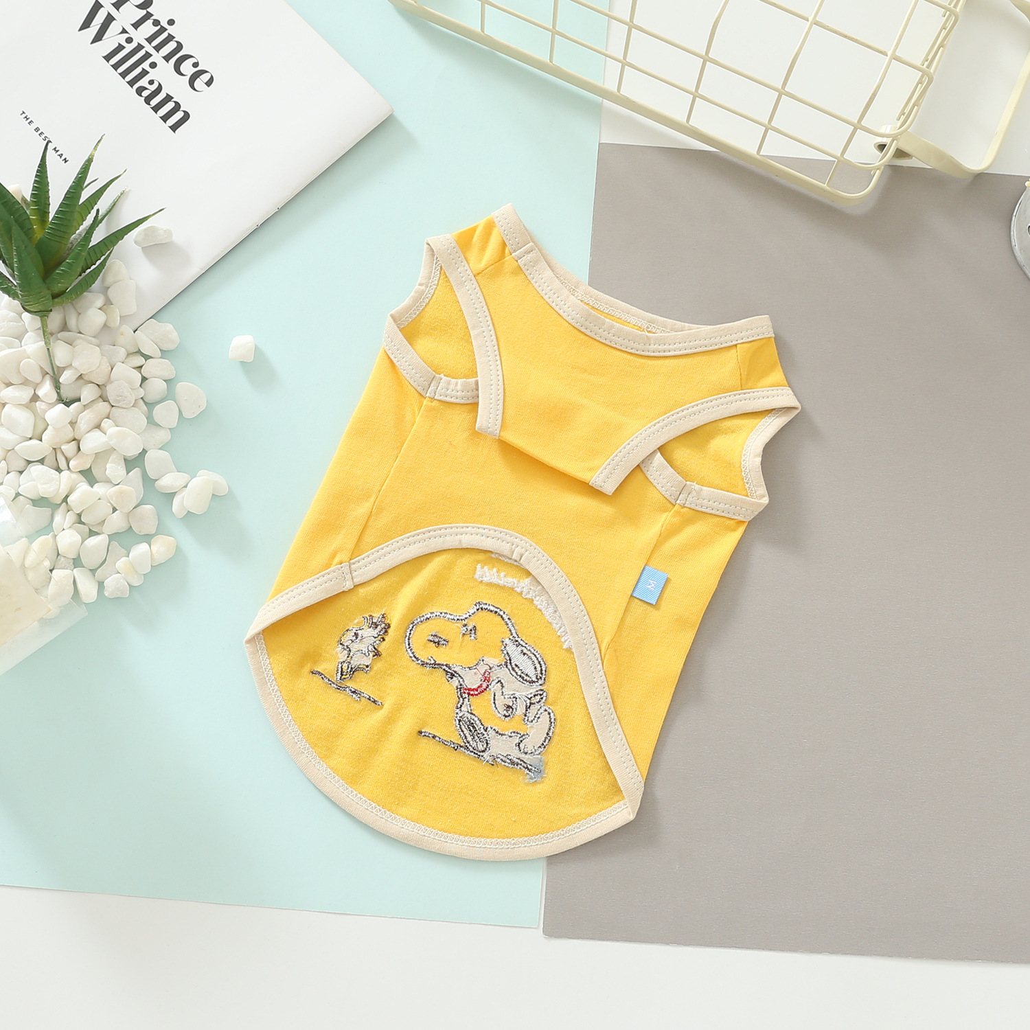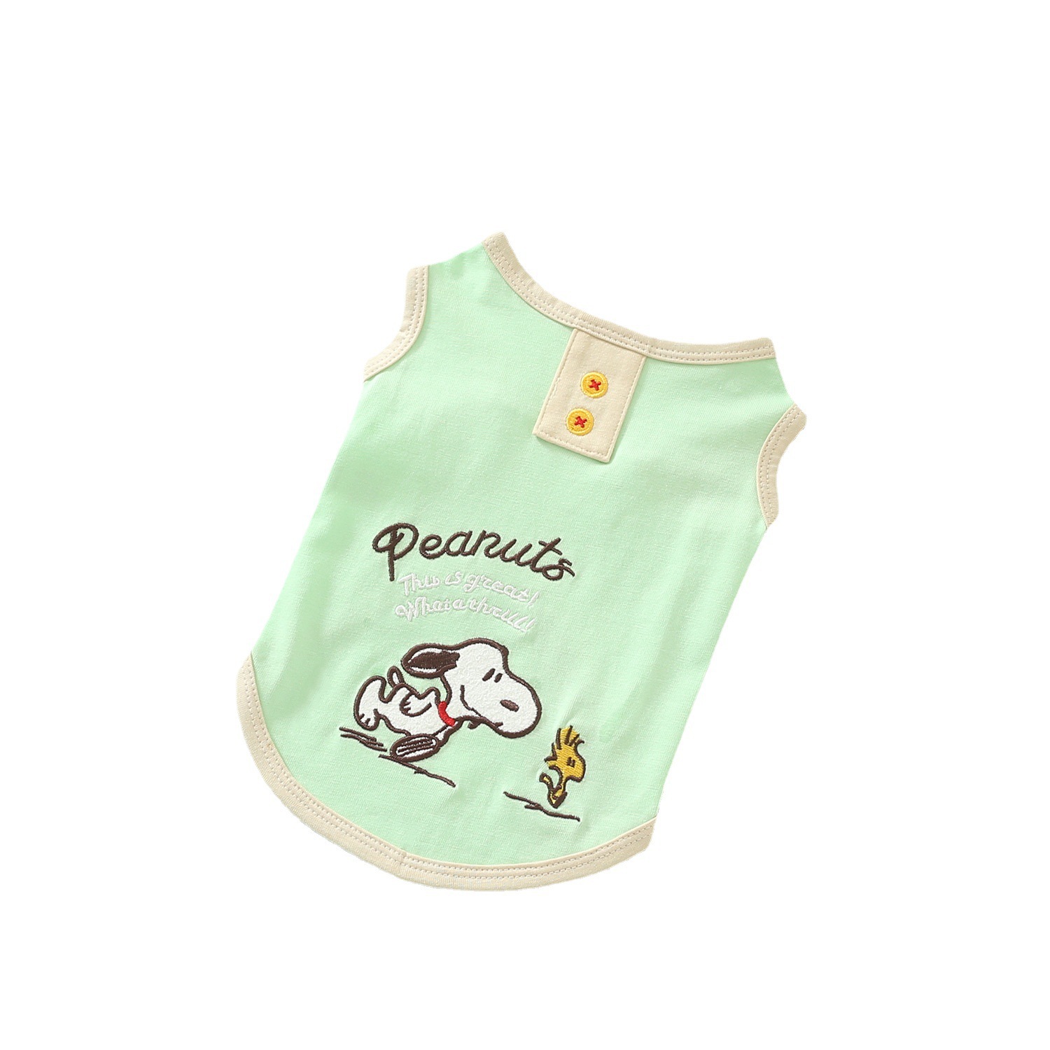Keep your pet comfy and adorable with this lightweight cartoon pet vest. Designed with a soft and skin-friendly fabric, this sleeveless style is easy to wear and perfect for everyday lounging, short walks, and warm-weather outings. The fresh pastel colours and cute embroidered-style cartoon details add a playful touch to your pet’s daily look.