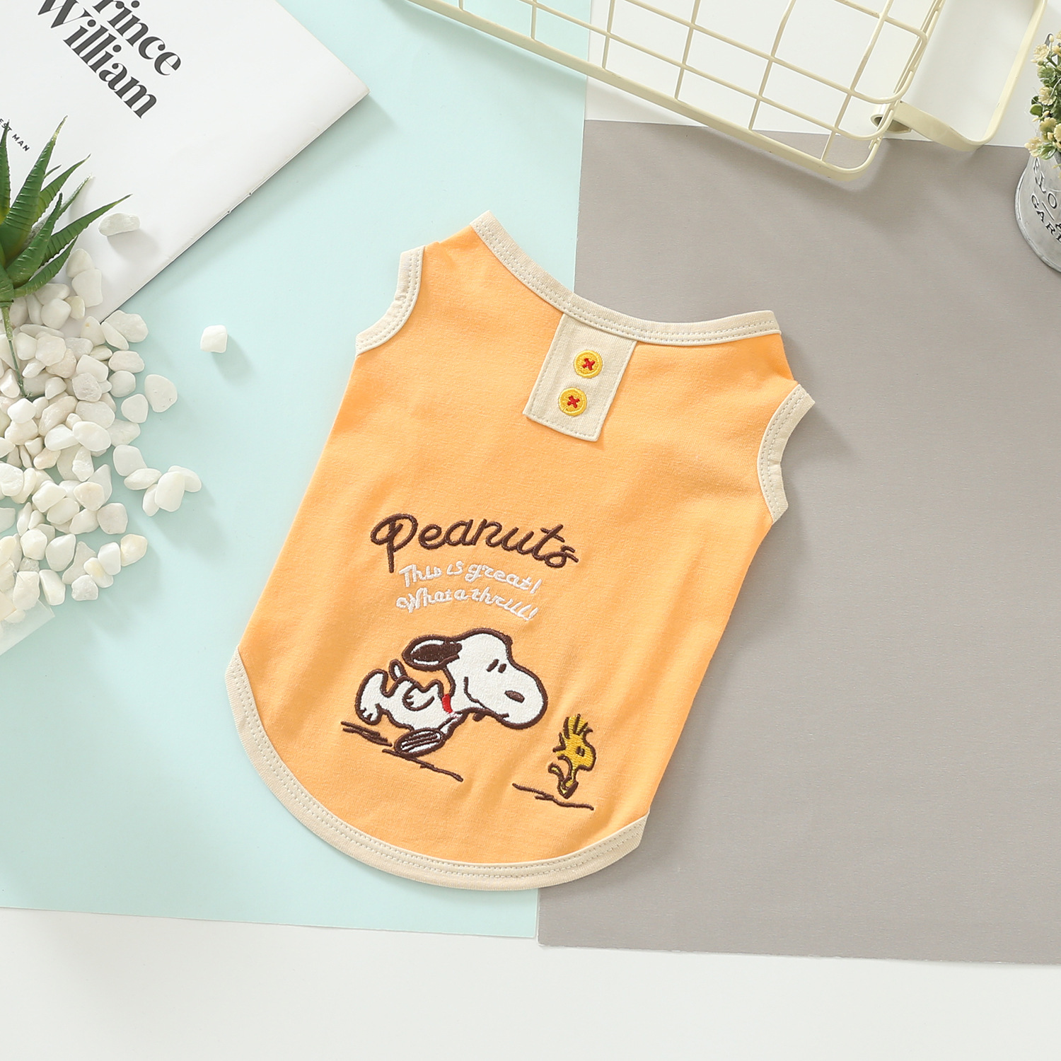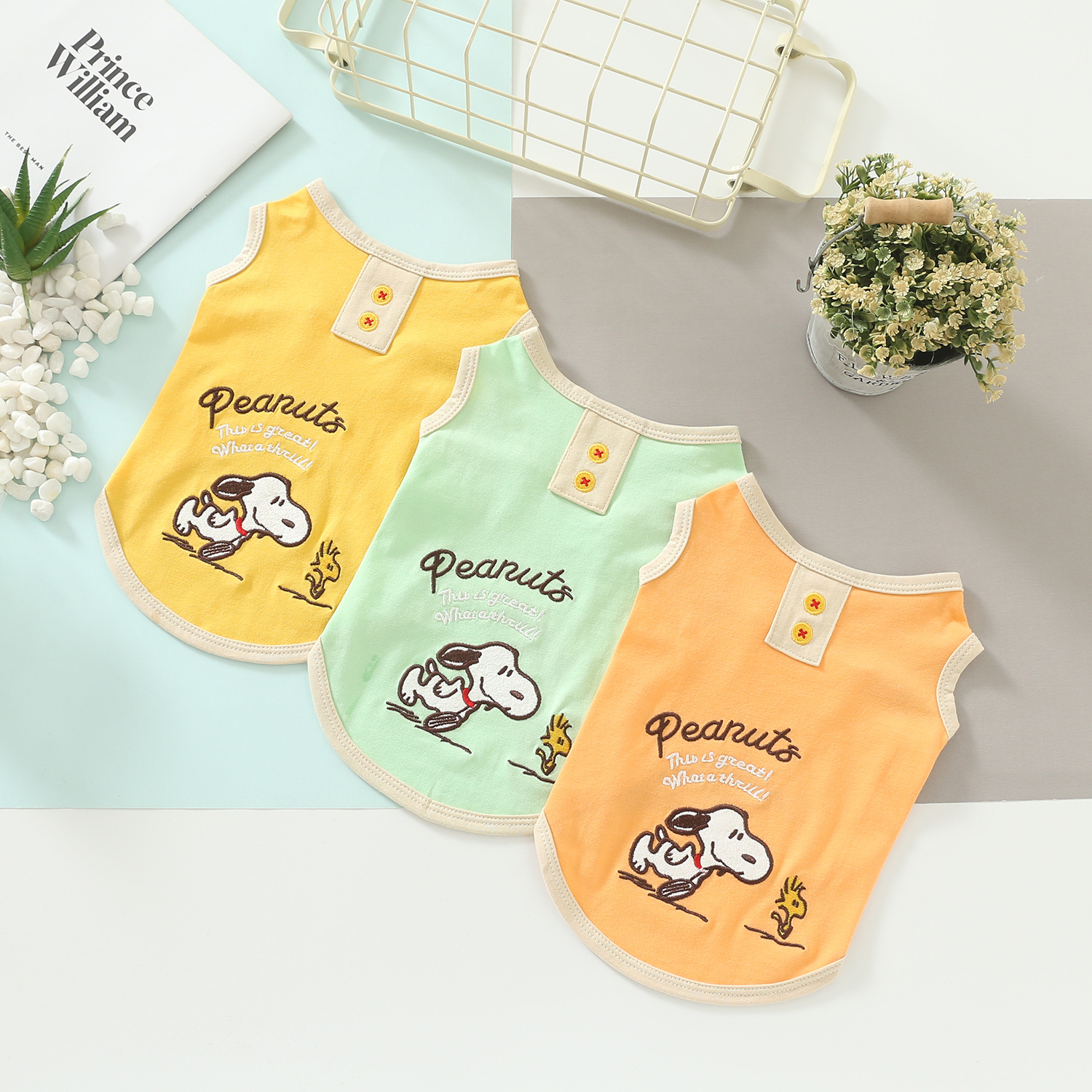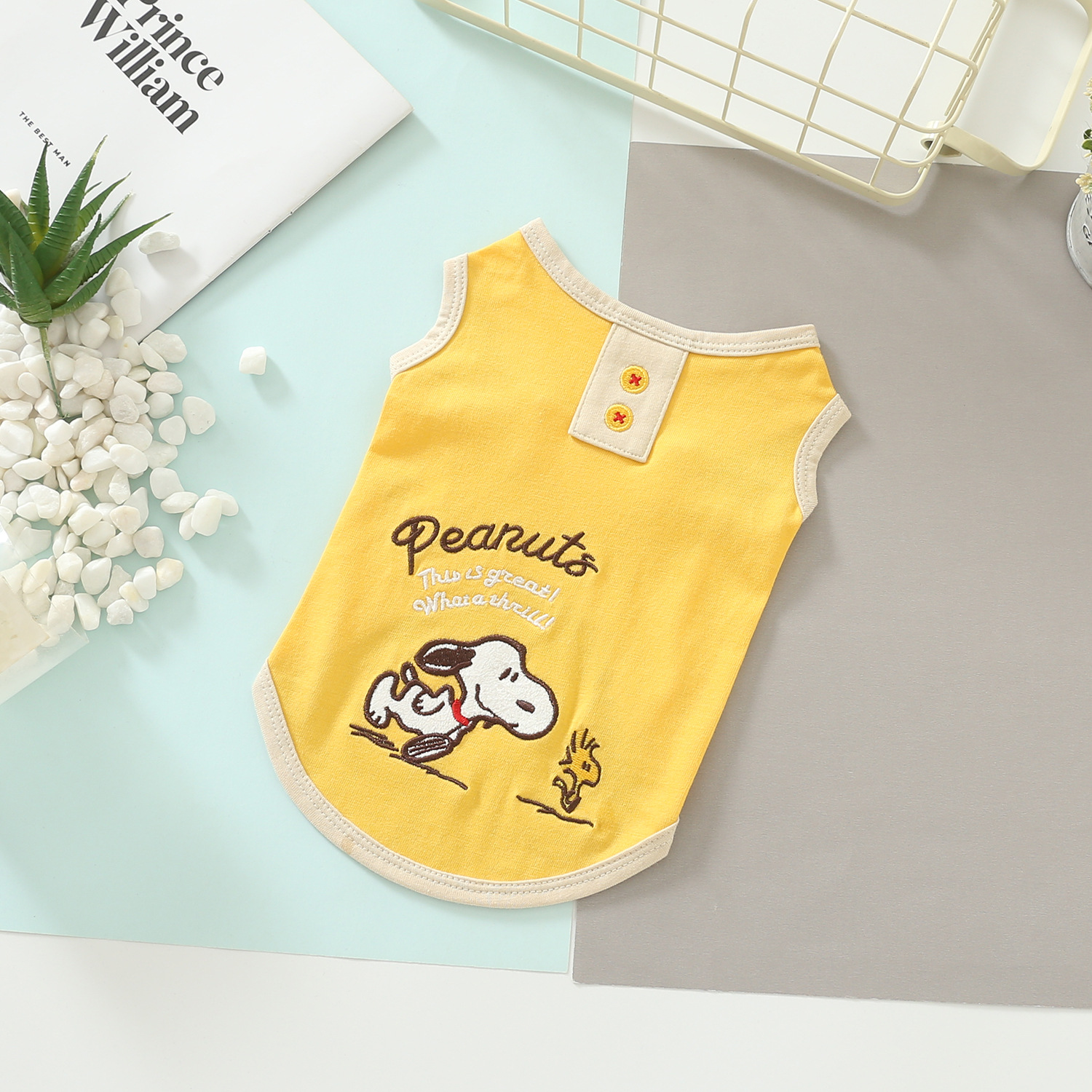 Keep your pet comfy and adorable with this lightweight cartoon pet vest. Designed with a soft and skin-friendly fabric, this sleeveless style is easy to wear and perfect for everyday lounging, short walks, and warm-weather outings. The fresh pastel colours and cute embroidered-style cartoon details add a playful touch to your pet’s daily look.