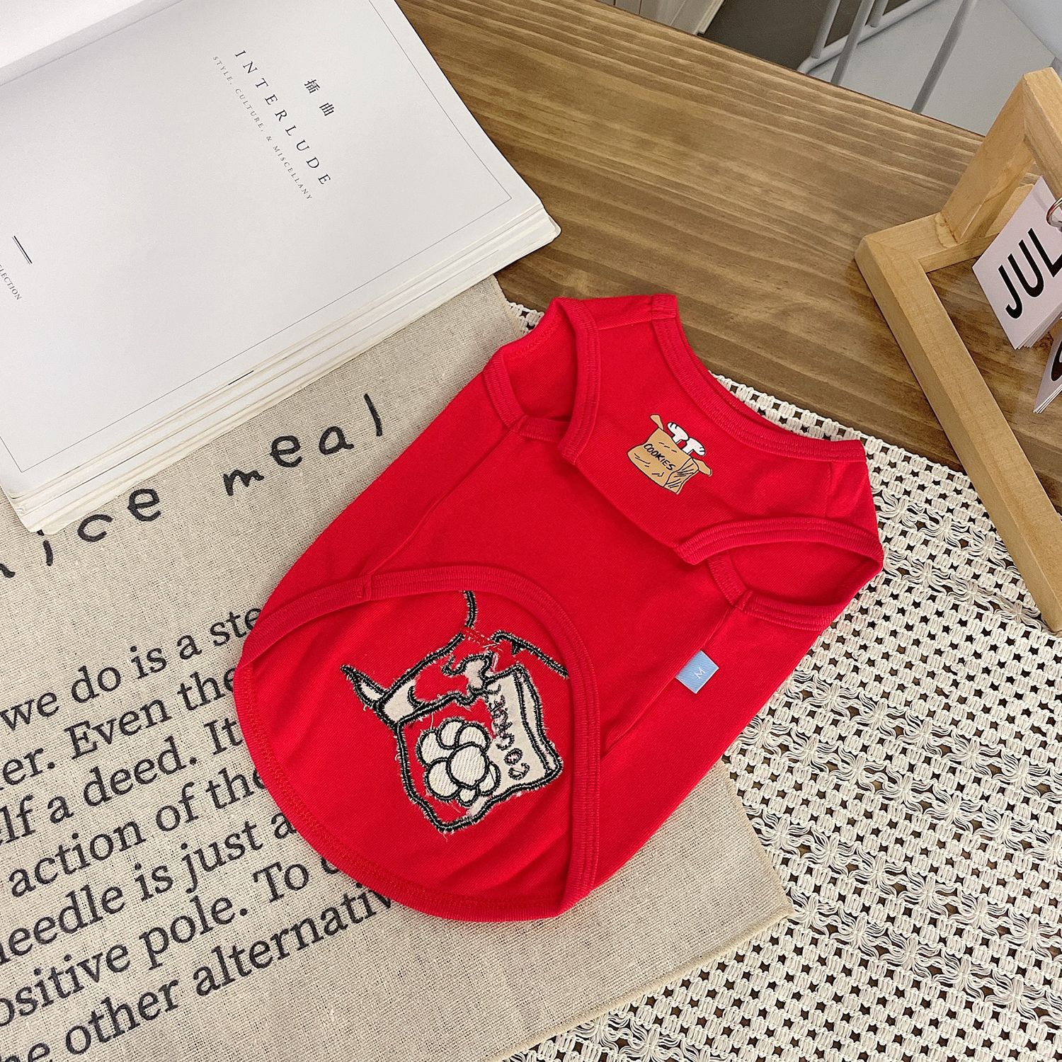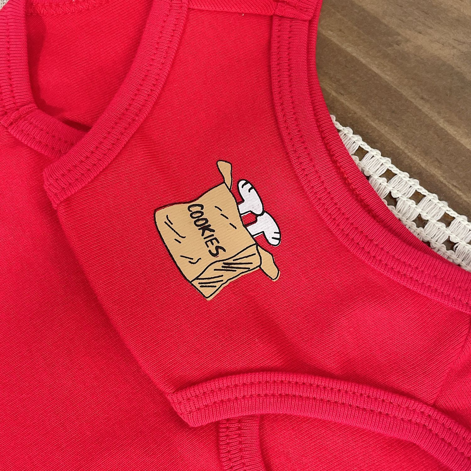 Add a fun pop of colour to your pet’s wardrobe with this adorable Cookie Break Pet Vest. Designed with a bright red tone, sweet cookie-inspired details, and a playful cartoon print, this vest brings together comfort and cuteness in one easy everyday piece. Made with a soft and lightweight fabric, it is comfortable for daily wear at home, on walks, or during photo moments.