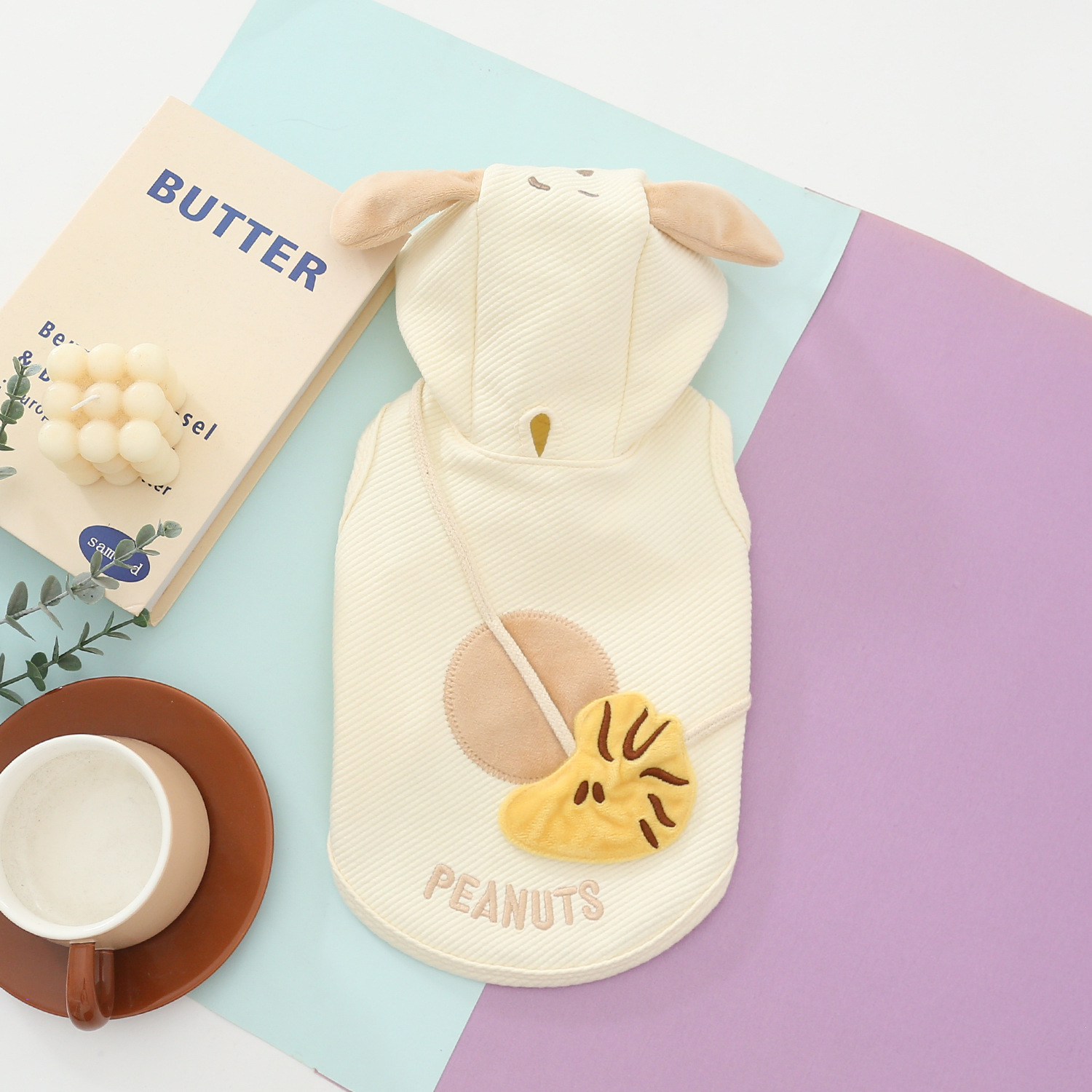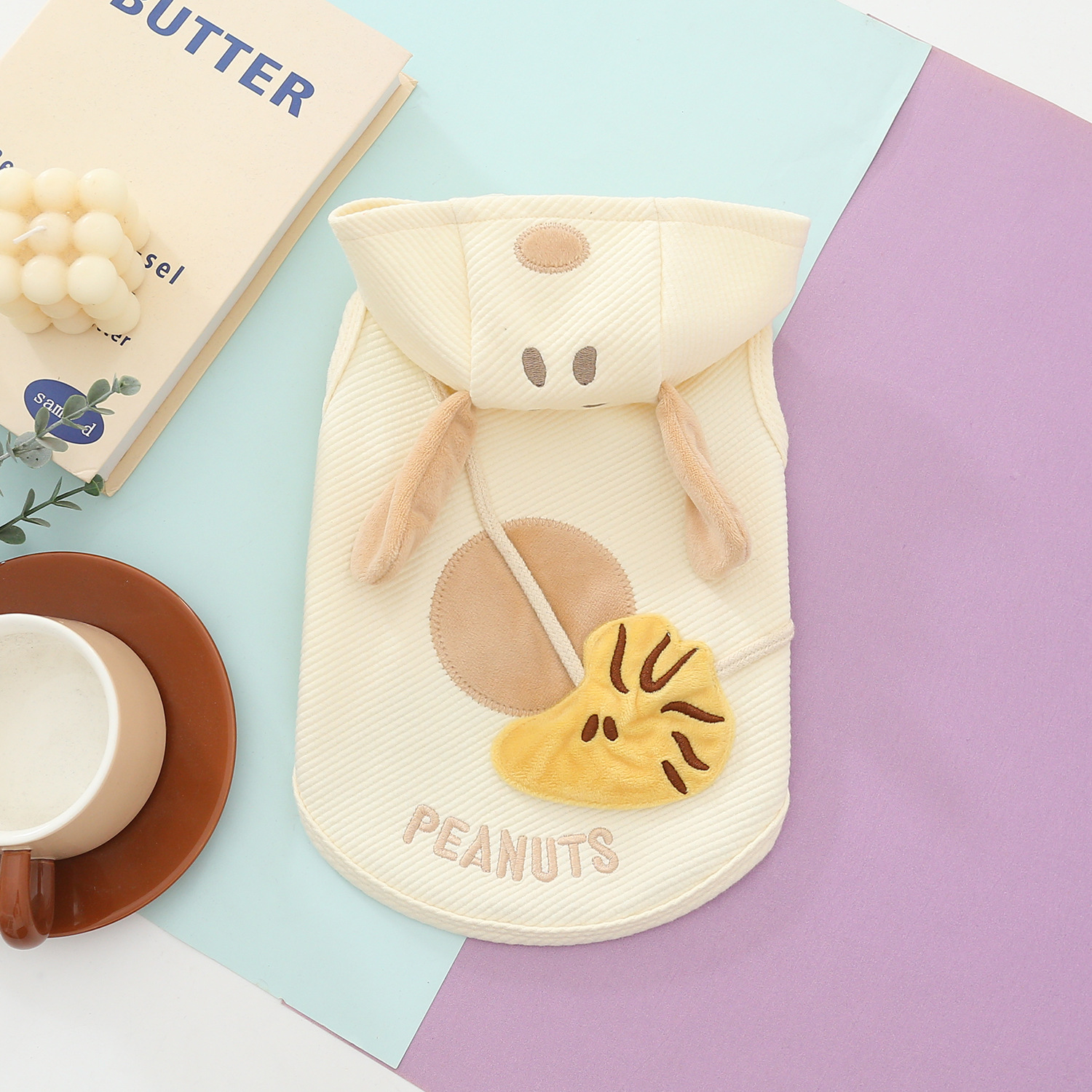 A soft and cozy pet hoodie featuring a textured fabric finish, adorable floppy-ear hood, and plush front detail. Perfect for keeping your pet warm and stylish in autumn and winter.